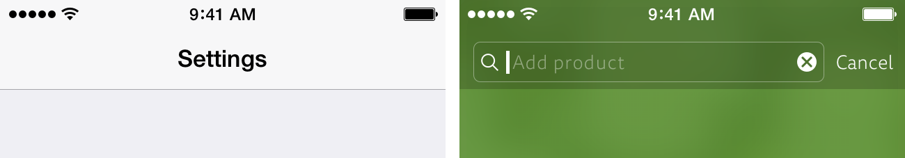 In Grocery List , we use a slightly modified transition to display a modal controller. But most of the animations and transitions are default. With Grocery List 2 and the new APIs, we could have added more custom animations as before. But Apple's solution to handle transitions is a good fit to most of our problems. That's why navigating through controllers in our app behaves the same as default apps do. As mentioned before, some of our app's workflows have significantly changed. As a result, we will also use custom animations to support the user better keeping focus.
